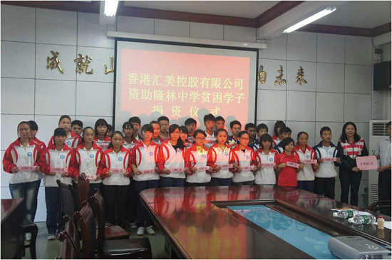 2014年初,匯美實業捐助50000元,幫助廣西隆林中學完成教學樓、綜合樓鋁合金窗戶的安裝,給學生們提供一個擋風御寒的學習環境。