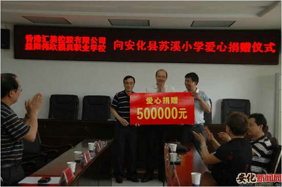 2012年,匯美實業向湖南安化清塘鋪鎮蘇溪村捐贈50萬元人民幣,用于修建偉欣教學樓。